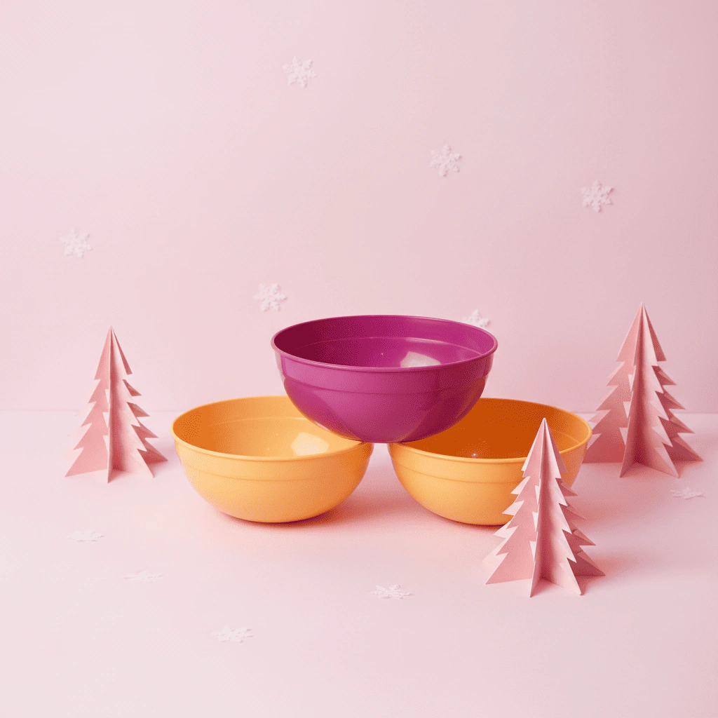 Diseño TOP Vibrante: El set incluye 2 Tazones Naranja (🍊) y 2 Tazones Fucsia (💖). ¡El toque de color que alegra instantáneamente tu mesa y tu cocina!